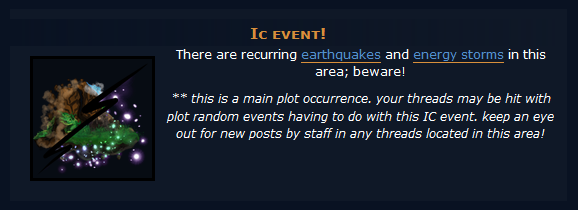 We have a new, small feature for y'all to enjoy! At the top of certain subforums, banners like this may appear: These will tell you about any area-wide events currently affecting that location! For lore, we are beginning the long trek of fleshing out some of our original religions! First on that list is Evylon - and the page has been updated to reflect all changes. Take a gander at the faiths of C'larae, Etherism, Fae'niel, the Light, the Eventide, and Zhaei'va; Cult of Salvation! Next, we have two awesome new subspecies for you all! Both can be found on the wolf species page. We're happy to introduce the cainos, which are based on domesticated dog breeds, and the lycaeon, based on feral/wild canine species! Last but not least, we have two species reduxes for you! The minotaur has been fleshed out further, introducing quite a number of new variants for everyone to play with, including a type that is more antelope-like! Then, we've completely redone and overhauled the zirus species, freeing it up a little more and making it a better, cohesive whole. PLOT: The gods have looked into the future, and have seen utter chaos. Almost all of the futures they gazed into have resulted in a single thing, no matter the path - and thus they have sent a warning out across time, affecting Seers with brief, sporadic visions speaking of doom and prophesy. While many Seers will not be strong enough to grasp the vision with clarity, a few will see the brief snatches for what they are. These visions are striking now; they may hit only once, or may strike multiple times, the same vision, in whatever way your Seer uses their Sight. It is involuntary, and cannot be blocked or fought! What does this mean?